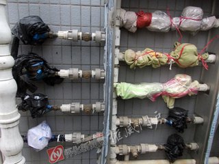 為防止家里的供水設(shè)施“被凍”,你可以采取以下幾種方式: ●安裝在室外的水表及水管,可用毛巾包捆;樓頂水箱應(yīng)蓋好頂蓋,上下進水管及閥門等用保溫材料裹緊; ●如水表被凍住,用熱毛巾包裹,用不超過60℃的溫水澆灑,切勿澆沸水、用火烘烤; ●如水龍頭和水管(PPR和PVC管材)被凍住,可用電吹風(fēng)烘吹,或用毛巾包裹后用溫水澆淋,同時可取硬物輕拍水管,直到管內(nèi)冰凍消融; ●打開水龍頭,開成滴水狀態(tài)保持流水防止結(jié)冰; ●不常住人的房屋應(yīng)關(guān)閉室內(nèi)水表閥門,打開水龍頭,放盡水管中剩水。